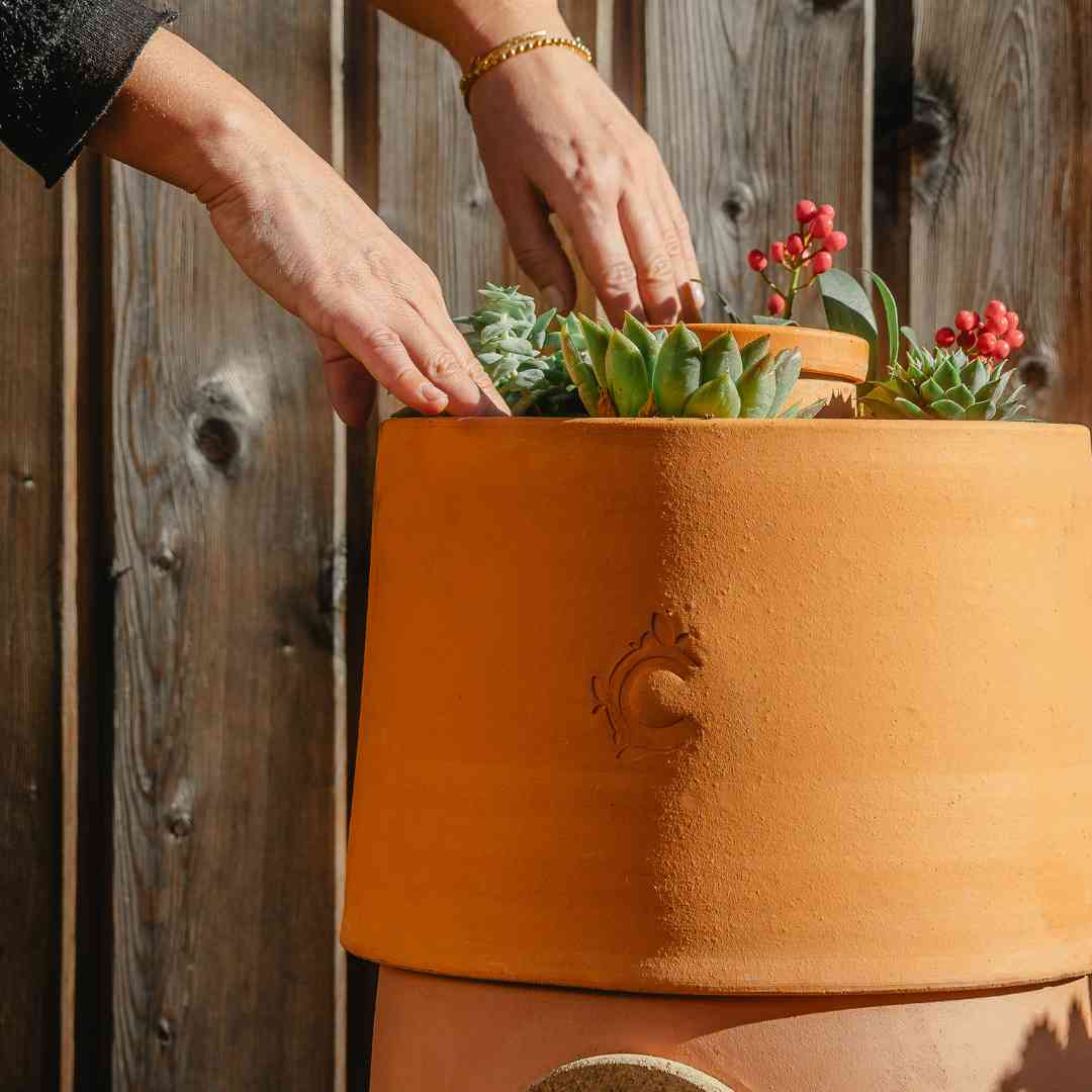 Chaque composteur est unique, fabriqué en terre cuite et tourné à la main par nos potiers