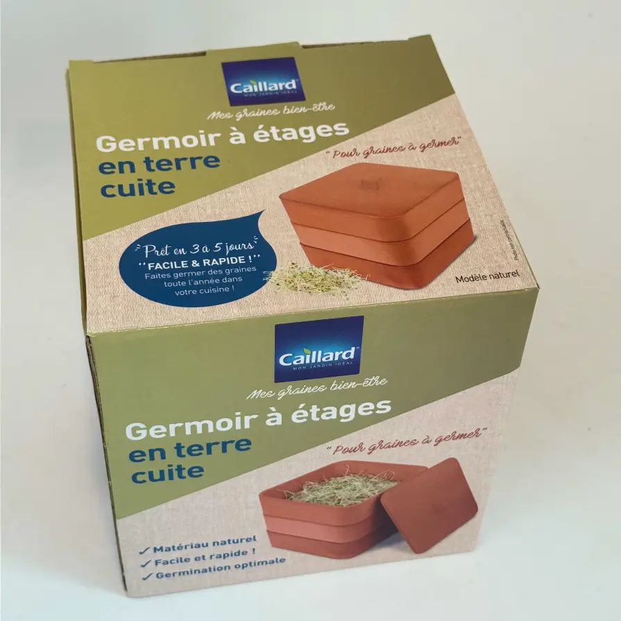 Germoir en terre cuite à étages, idéal pour faire germer facilement vos graines. Favorise une germination naturelle grâce à l’argile. Parfait pour agrémenter salades et plats avec des pousses fraîches !