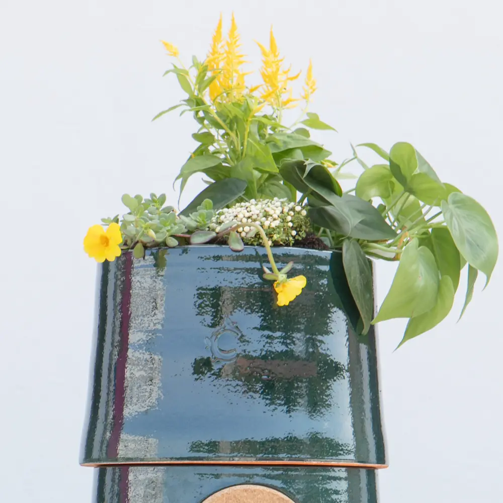 Chaque pièce d’émail est unique, la couleur peut légèrement varier d’une pièce à l’autre. Comprend 3 étages : socle + composteur + pot de fleurs