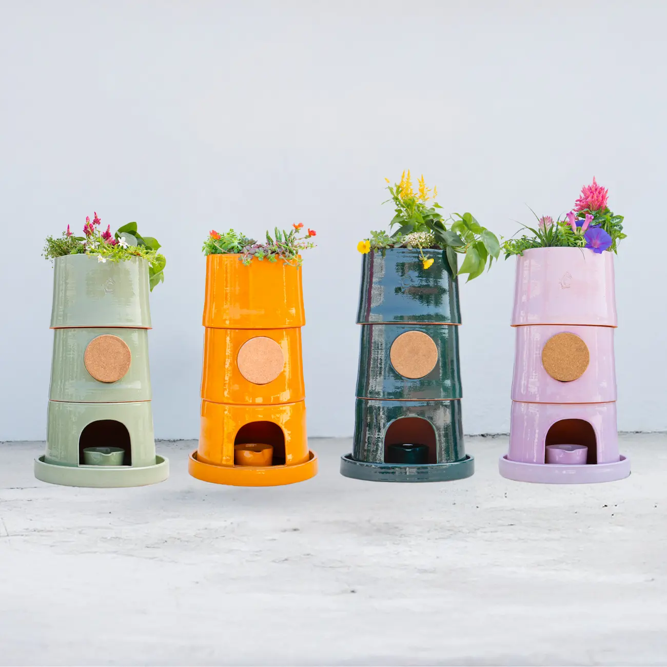 - Un pot de fleurs 2-en-1 qui permet de composter avec des vers