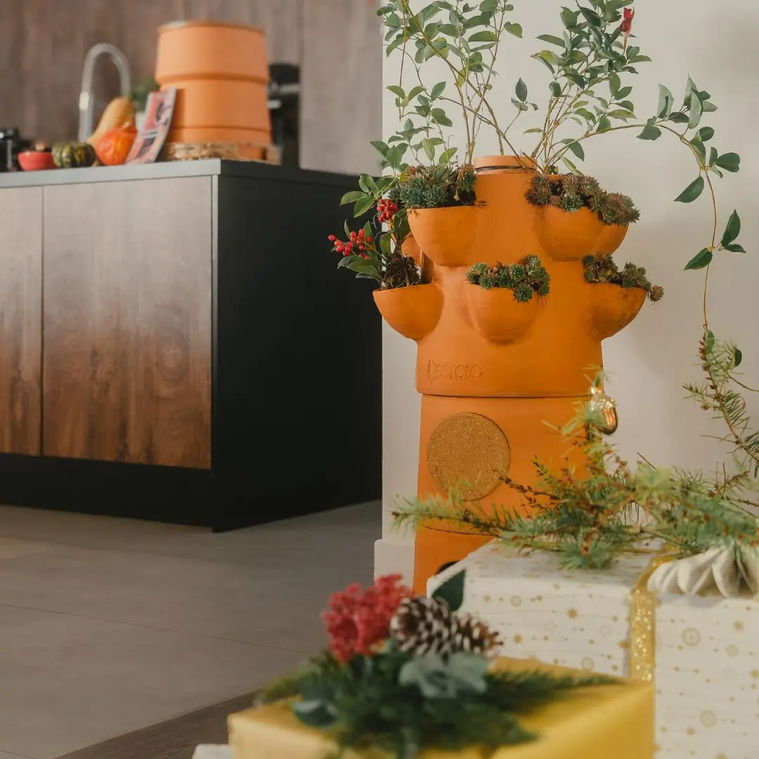 La terre cuite de notre potager composteur retient l’humidité pour prolonger l’arrosage de vos plantes.